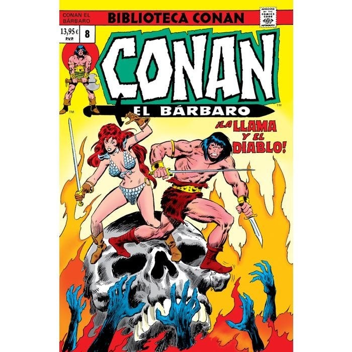 Es más que un cómic: es una máquina del tiempo que te lleva a La Era Hyboria. Las adaptaciones de “The Purple Hearth of Erlik”, de Robert E. Howard, y “Tower of Blood”, de David A. English. Conan y Red Sonja vuelven a unir fuerzas. Contiene los correos de los lectores y las secciones de la edición original. ¡No puedes perderte esta edición histórica!