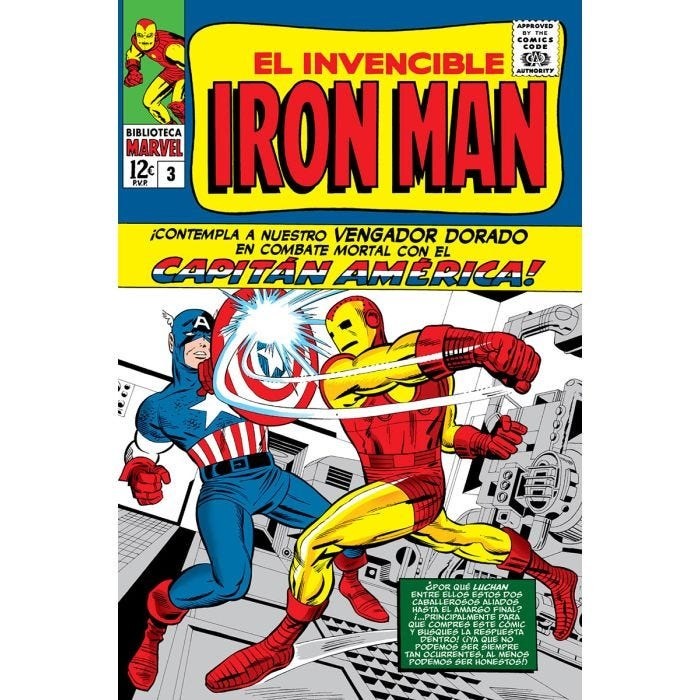 Es más que un cómic: es una máquina del tiempo. ¿Cómo es posible que un hombre con un arco y un puñado de flechas pueda ser rival para el Cabeza de Lata? No intentes responder a esta pregunta hasta que no contemples al sensacional Ojo de Halcón y su alianza con la enigmática Viuda Negra. Además, el primer choque de Iron Man con el Capitán América y el origen de El Mandarín. ¡Biblioteca Marvel, como siempre y mejor que nunca! ¡No puedes perderte esta edición histórica!