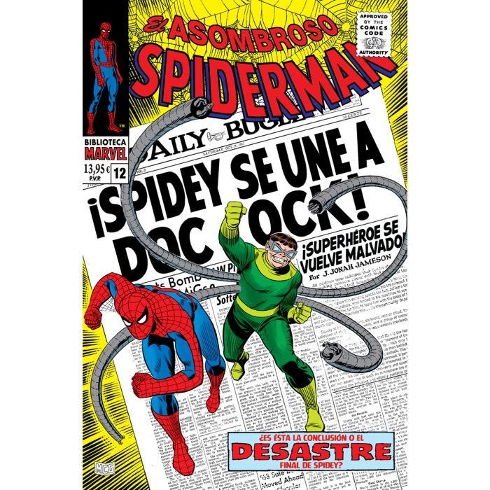 Es más que un cómic: es una máquina del tiempo. La búsqueda del Doctor Octopus por toda la ciudad tiene el giro más inesperado de todos… ¡cuando Spidey se convierte en su aliado! ¿Quizás por eso Ka-Zar se enfrentará con el trepamuros? Además, ha llegado el momento de dar el salto: te presentamos el primer número de la nueva serie arácnida, The Spectacular Spider-Man. Contiene los correos de lectores de la edición original y la cronología que lo sitúa todo en contexto. ¡Biblioteca Marvel, como siempre y mejor que nunca! ¡No puedes perderte esta edición histórica!