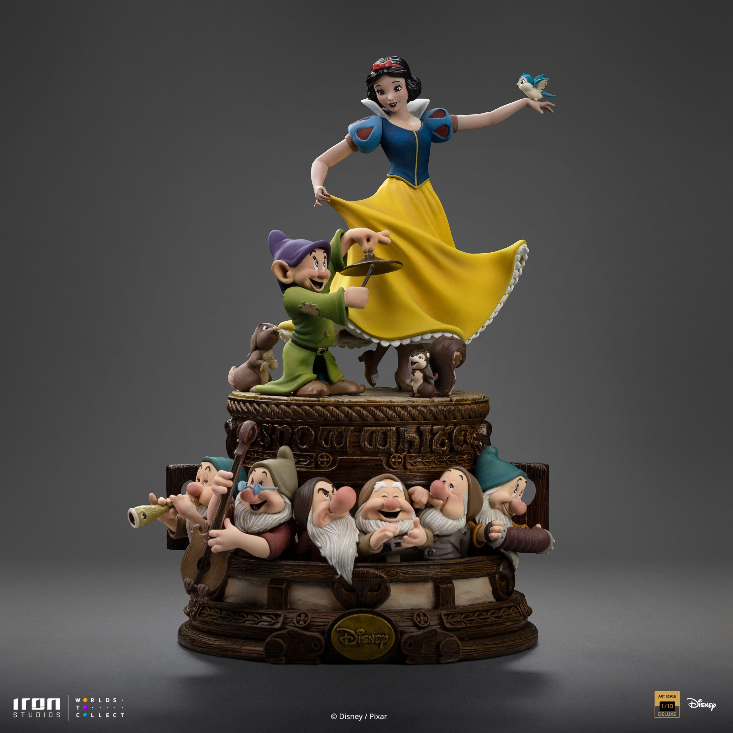 La estatua Blancanieves y los Siete Enanitos Deluxe captura toda la magia del clásico animado de 1937. Con detalles minuciosos en los trajes, expresiones llenas de vida y una composición dinámica, esta pieza destaca por su fidelidad al diseño original. Iron Studios ha conseguido un acabado de alta calidad que transporta directamente al mundo de los cuentos de hadas.