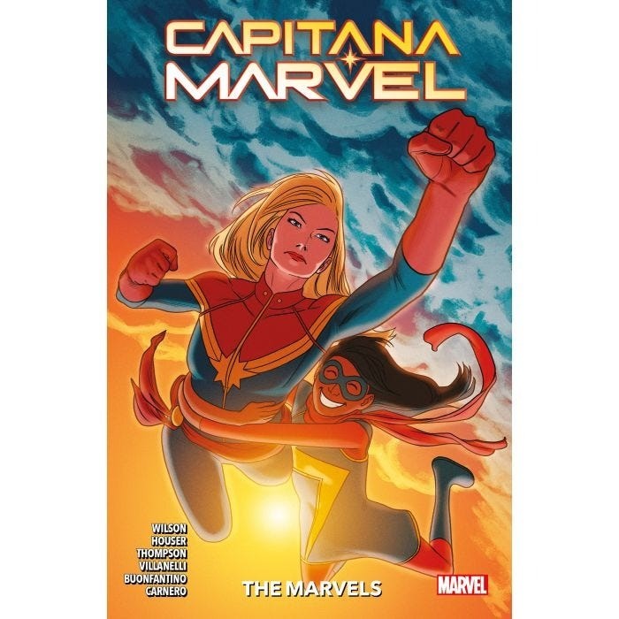 Varias brillantes heroínas han portado con orgullo el título Marvel en su nombre, tanto por separado como juntas… y muy revueltas. Este tomo te ofrece algunos de esos encuentros, retrocediendo junto a Kamala Khan al pasado de su ídolo, Carol Danvers, en las oficinas de la revista Woman… y volando al futuro para presenciar la aventura final de la Capitana Marvel