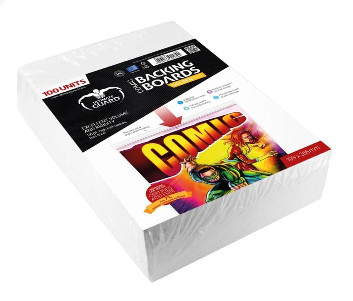 Mantén tus cómics en perfecto estado con los backing boards (cartones rígidos) tamaño Golden de Ultimate Guard, la marca de referencia en conservación de cómics y coleccionables. Este pack incluye 100 unidades de cartones de alta calidad, diseñados especialmente para proporcionar el soporte y protección que tus cómics merecen.