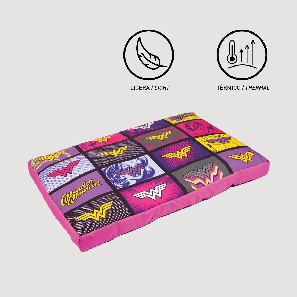 Una colchoneta térmica y antideslizante ideal para que tu perro descanse sobre el mítico logo de Wonder Woman en talla M