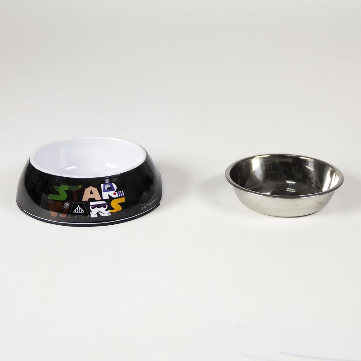 Comedero para perros antideslizante compuesto por dos piezas inspirado en la saga de Star Wars, con un diámetro de 22 centímetros, indicado para perros grandes fabricado en melamina y metal.