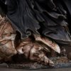 La figura Darth Nihilus™ Premium Format™ mide 66.6 cm de alto, 51.6 cm de ancho y 52.5 cm de profundidad. Es la encarnación grotesca de un vacío insaciable. Con su capa oscura que parece consumir todo el espacio a su alrededor, Darth Nihilus salta desde una tumba fragmentada. Esta tumba está rodeada por un desolado paisaje desértico. Las rocas rojas y erosionadas se vuelven del color oxidado de la sangre seca cuando el sable de luz de este villano vicioso las ilumina. Él drena la energía de la Fuerza de cada criatura. Lo hace en su búsqueda por preservar su propia vida. Esto, por lo tanto, convierte su corazón en algo tan negro como las túnicas que viste.