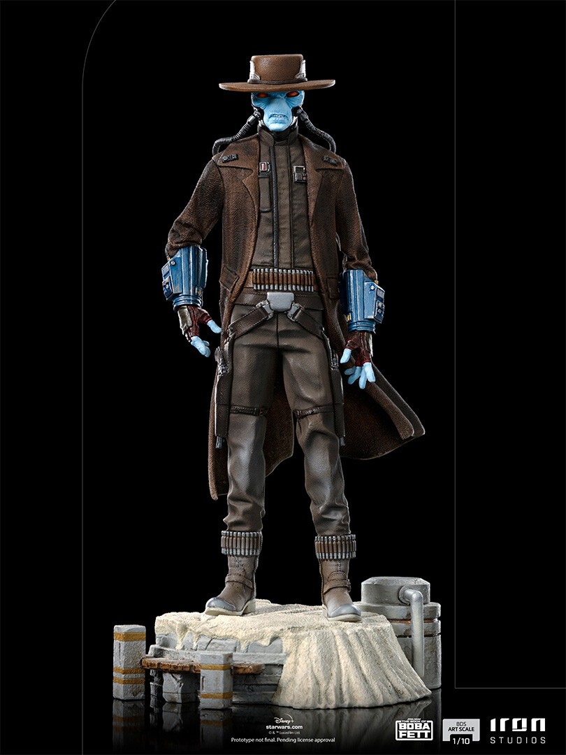 Caminando sobre las abrasadoras arenas del árido desierto del planeta Tatooine, a las puertas de la ciudad de Freetown, como un pistolero del Viejo Oeste americano, una figura siniestra y esbelta de crueles ojos rojos bajo su característico sombrero de ala ancha, vestido con un sombrero marrón. sobretodo, posiciona sus manos hábiles y rápidas, listo para sacar sus pistolas bláster gemelas LL-30 de la funda de su cinturón, desafiando al sheriff local Cobb Vanth a duelo. En el mes de mayo, conmemorando la saga Star Wars, Iron Studios presenta con orgullo su estatua ”Cad Bane – The Book of Boba Fett – Art Scale 1:10”, con el implacable mercenario y cazarrecompensas inspirado en la icónica escena de el sexto episodio de la serie del servicio de streaming de Disney+ ”The Book of Boba Fett”, serie derivada de ”The Mandalorian” del universo de Star Wars, donde el personaje hizo su estreno live-action.