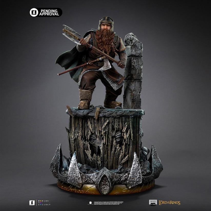 La estatua está fabricada en resina de alta calidad. Además, está meticulosamente pintada a mano. Este coleccionable a escala 1/10 presenta un movimiento muy dinámico. También cuenta con detalles auténticos de la armadura. Cada aspecto de Gimli, desde su barba hasta sus hachas, ha sido cuidado con gran esmero.