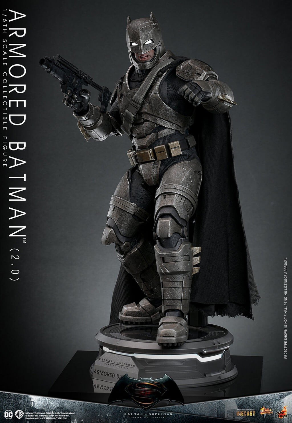 Habiendo sido testigo de la inmensa destrucción que Superman es capaz de provocar en la Tierra, Bruce Wayne, también conocido como Batman, se muestra decidido a poner fin al poder desenfrenado del kryptoniano. Para enfrentarse a Superman, Batman se pone un batitraje fuertemente blindado, diseñado específicamente para esta trascendental ocasión. Inspirándose en la película Batman v Superman, Sideshow y Hot Toys presentan la figura Hot Toys Armored Batman.