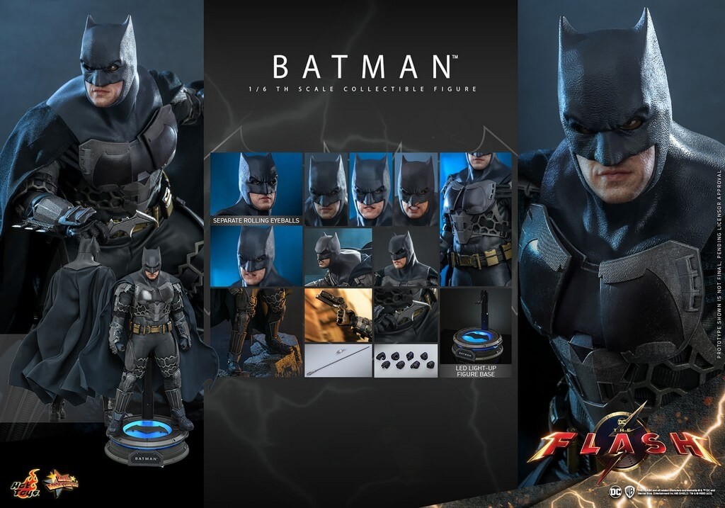 En este verano, el muy esperado éxito de taquilla de DC, The Flash, explorará un multiverso de héroes de DC Comics. Para preparar a los fanáticos para este emocionante lanzamiento, Sideshow y Hot Toys presentan al Caped Crusader que regresa como una figura de Batman de sexta escala inspirada en The Flash, destacando su traje avanzado. ¡Viene con dos cabezas cubiertas para coordinar con poses específicas! El altamente detallado coleccionable de Batman presenta una cabeza encapuchada recientemente desarrollada con globos oculares rodantes separados y tres caras inferiores intercambiables que capturan diferentes expresiones, una cabeza encapuchada adicional con globos oculares rodantes separados y una articulación del cuello sin costuras: también un cuerpo especializado que resalta su físico musculoso. El atuendo de Batman con precisión de pantalla en un esquema gris plateado adornado con una textura distintiva muestra signos de desgaste, viene con armaduras ajustables alrededor del pecho y el pie, cinturón de herramientas esculpido en oro metálico y capa de tela con alambre: armas detalladas que incluyen un dispositivo de agarre, Batarangs. y un soporte de exhibición iluminado por LED especialmente diseñado con el logotipo de Batman.