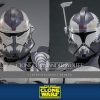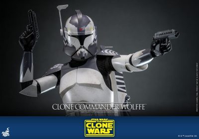La Figura Commander Wolffe Hot Toys altamente precisa presenta la armadura y el casco únicos del personaje con efectos de desgaste y marcas distintivas, una cabeza esculpida con un parecido realista, cascos intercambiables y accesorios de brazalete para recrear la apariencia de la armadura de la Fase I y la Fase II, un rifle bláster, un par de pistolas bláster, una mochila propulsora, una tableta de datos y una base de exhibición.