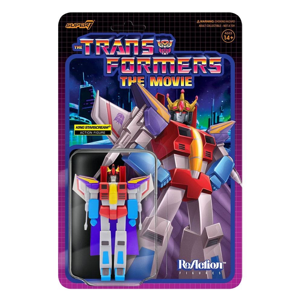 Figura articulada de King Starscream basada en la famosa saga Transformers  para la serie ReAction de Super7, con un tamaño aproximado de 10 cm.