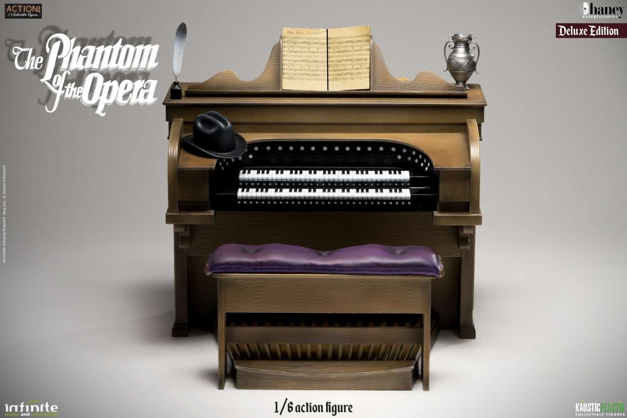 De InfiniteStatue & Collectibles y Kaustic Plastik, la figura Fantasma de la Ópera Deluxe Kaustik. Elaborada y pintada a mano con minucioso cuidado y gran detalle, la figura de acción es escala 1/6 con ropa de tela e incluye accesorios y piezas intercambiables. Lon Chaney como Fantasma de la Ópera es la primera figura de acción con ojos móviles creada por el equipo artístico de InfiniteStatue y Kaustic Plastik. Los ojos de Lon Chaney se mueven gracias a un mecanismo interno y añaden un nivel adicional de realismo y calidad a esta excepcional figura coleccionable. La figura de acción de Lon Chaney como Fantasma de la Ópera 1/6 Versión Deluxe incluye: 1 cabeza realista pintada a mano con ojos móviles. 1 cuerpo completamente articulado de aproximadamente 12 pulgadas 8 manos intercambiables (sin muñequeras visibles) 1 esmoquin negro 1 camisa blanca 1 pañuelo morado 1 manto negro 1 par de zapatos negros 1 órgano de iglesia 1 sombrero negro 1 partitura musical 1 juego de letras 1 tintero 1 frasco de plata 1 soporte magnético.