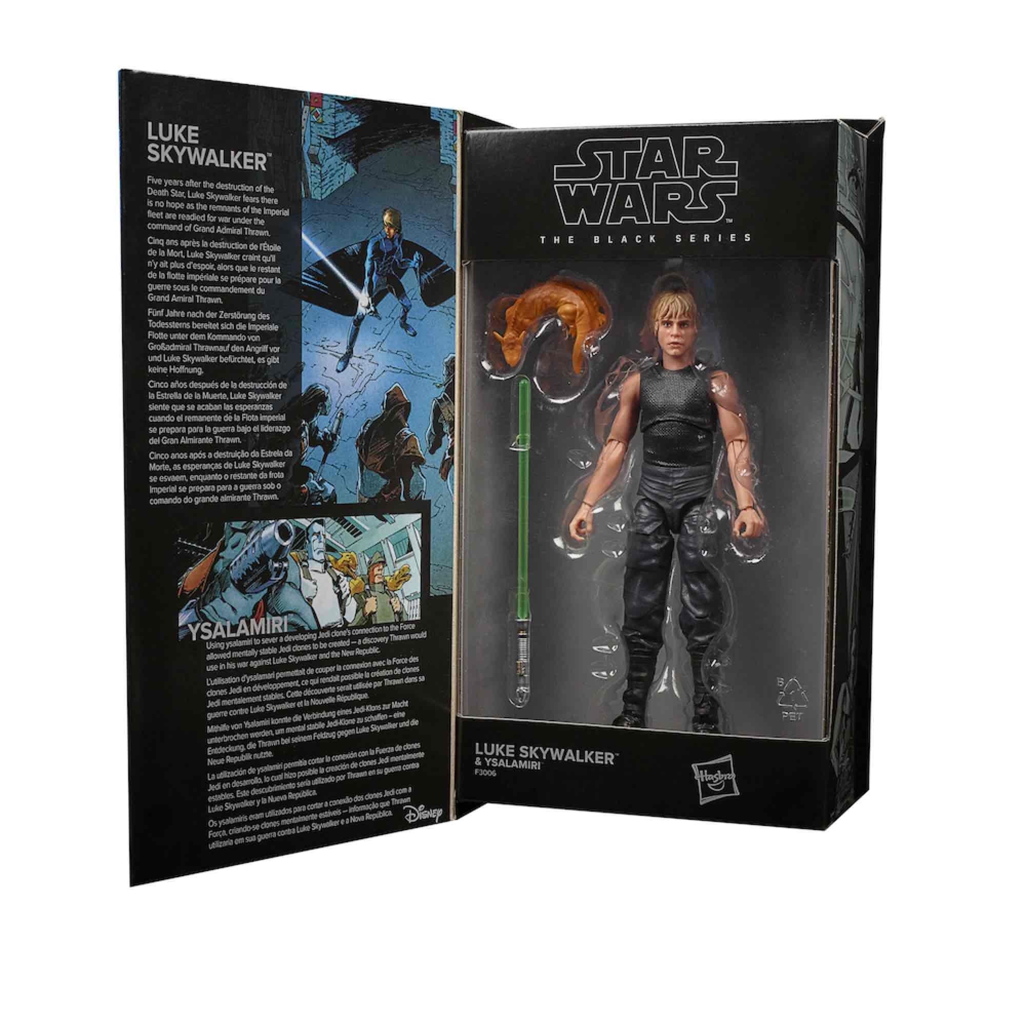 Hasbro presenta dentro de su colección Black Series , y celebrando el 50 aniversario de Lucasfilm, la figura de Luke Skywalker junto a Ysalamiri, basada en el universo Star Wars.