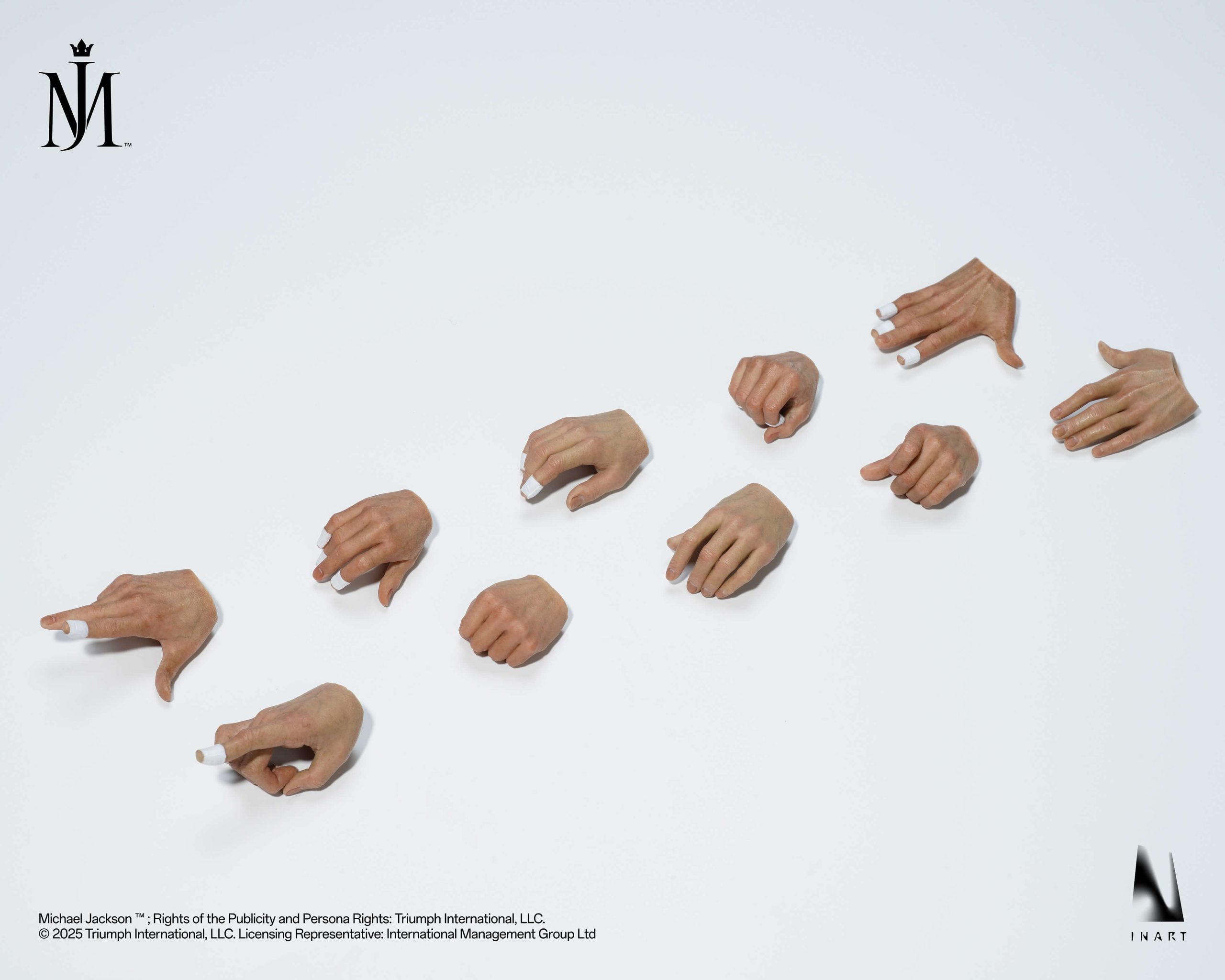 El esculpido facial cuenta con ojos articulados y cabello implantado de manera artesanal, logrando un parecido asombroso con el Michael Jackson real. La figura viene acompañada de un traje completo tipo esmoquin blanco, zapatos de cuero, micrófono, base expositora y una selección de manos intercambiables para recrear sus movimientos más famosos. Todo el conjunto rinde tributo a uno de los momentos más emblemáticos de su carrera.