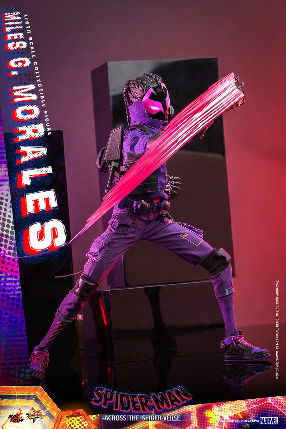 Miles G. Morales es la versión en realidad alternativa de Miles Morales, quien creció de manera completamente diferente a él. Esta versión del personaje nunca fue mordida por una araña radiactiva y no tiene superpoderes. Pero ha caído en el papel de convertirse en el justiciero Prowler, bajo la tutela de su tío Aaron. ¡Sideshow y Hot Toys están encantados de expandir la serie coleccionable Spider-Man: Across the Spider-Verse y presentar la figura coleccionable de sexta escala de Miles G. Morales para todos los coleccionistas de esta dimensión! La figura de sexta escala, altamente detallada, incluye una cabeza esculpida recientemente desarrollada con un sistema de globo ocular giratorio separado y una cabeza enmascarada con función de iluminación LED en rojo violáceo. Su atuendo futurista en tono morado está bellamente recreado a través de un disfraz de técnicas mixtas, desde la chaqueta con cuello alto, mochila, camisa estampada, pantalones y el cinturón utilitario esculpido. La figura también incluye un par de guanteletes Prowler iluminados por LED y zapatillas de deporte con efecto reflectante luminoso para completar su apariencia como se ve en la película. Los accesorios más detallados incluyen latas de aerosol, efecto de ataque de garra de guantelete, fondo de cómic, un poste de tubería con cadenas como accesorio de diorama y un soporte para figuras temáticas. ¡Esta es la oportunidad de reservar Miles G. Morales para tu colección de coleccionables de Marvel!