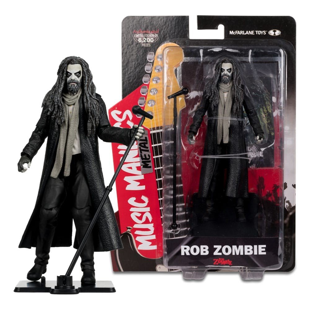 Figura articulada de Music Maniacs, Rob Zombie, con un tamaño aprox. 15 cm. Viene en una caja con ventana, de McFarlane Toys.
