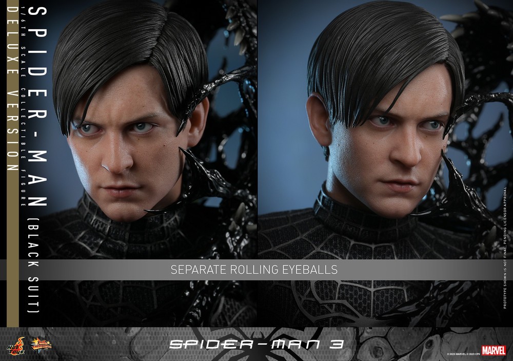 La figura coleccionable de Spider-Man Traje negro Hot Toys versión Deluxe a escala 1/6 presenta especialmente: – Imagen auténtica y detallada de Tobey Maguire como Peter Parker/Spider-Man con traje negro en Spider-Man 3. – Una (1) cabeza esculpida recientemente desarrollada con sistema de globo ocular giratorio independiente – Una (1) cabeza enmascarada intercambiable – Cuerpo con 30 puntos de articulación. – Aproximadamente 30 cm de altura – Diez (10) piezas de agujas intercambiables con patrón de red negra que incluyen: – Un (1) par de puños – Un (1) par de manos relajantes – Un (1) par de manos abiertas – Un (1) par de manos para disparar telarañas. – Una (1) web sosteniendo la mano izquierda – Un (1) accesorio que se sujeta con la mano derecha – Cada pieza de cabeza esculpida está especialmente pintada a mano. Traje: – Un (1) traje de Spider-Man de color negro y plateado recién confeccionado con adornos plateados, un patrón de telaraña y un emblema de araña en el pecho. Accesorios: – Una (1) cabeza de simbionte alienígena (unible a la figura) y lengua con función magnética – Dos (2) brazos simbiontes alienígenas (unibles a los brazos) – Seis (6) tiras de accesorios de correas de diferentes formas y longitudes – Un soporte para figuras de diorama temático especialmente diseñado con estructura de capilla en colisión (Aproximadamente 19 cm de largo x 12 cm de ancho x 18 cm de alto)***