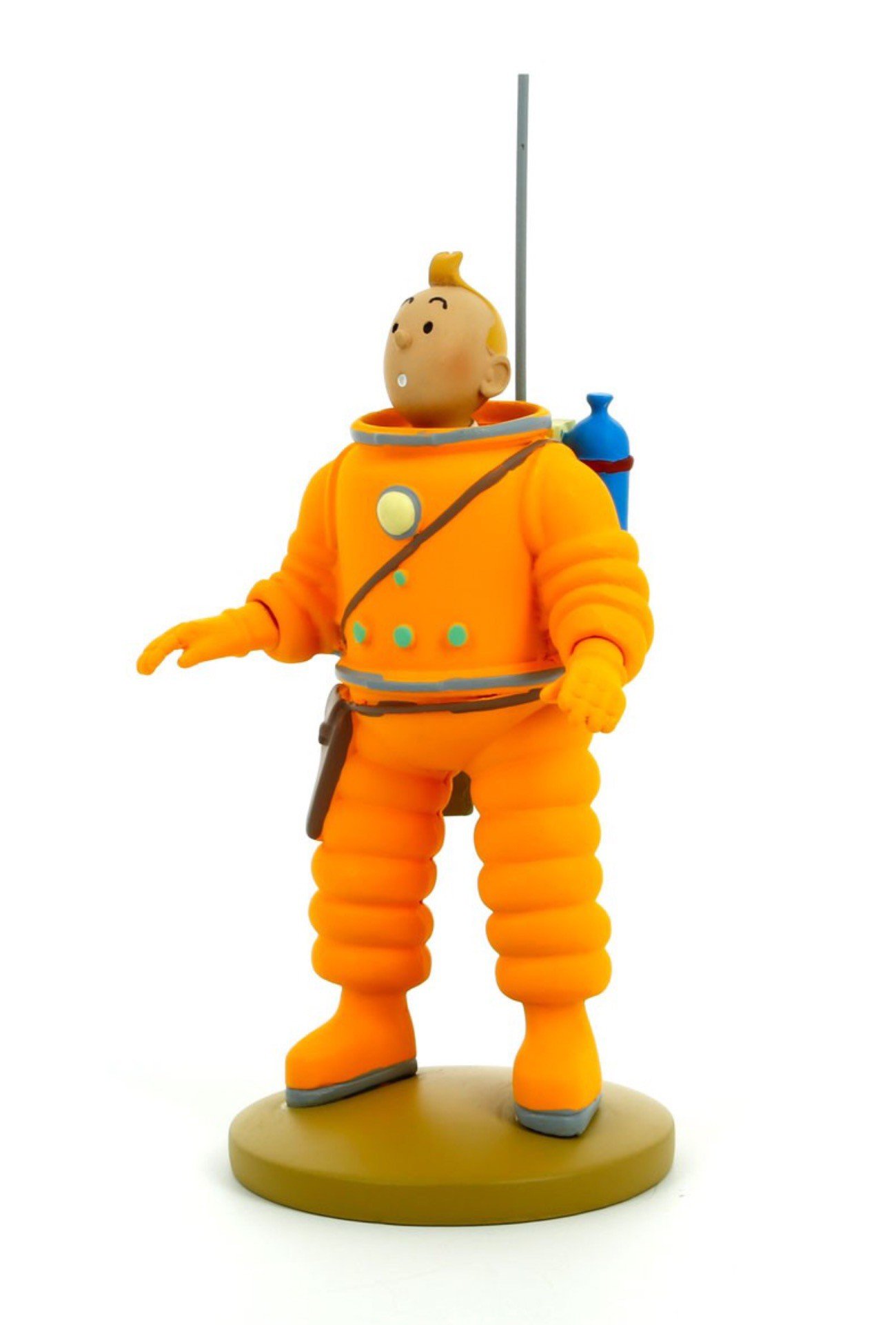 Realizada en resina de gran calidad, la Resina Tintín Luna destaca por su nivel de detalle y fidelidad al cómic. Tintín aparece con su clásico traje espacial naranja, convirtiéndose en el punto central de la colección de figuras que siguen una escala proporcional.
