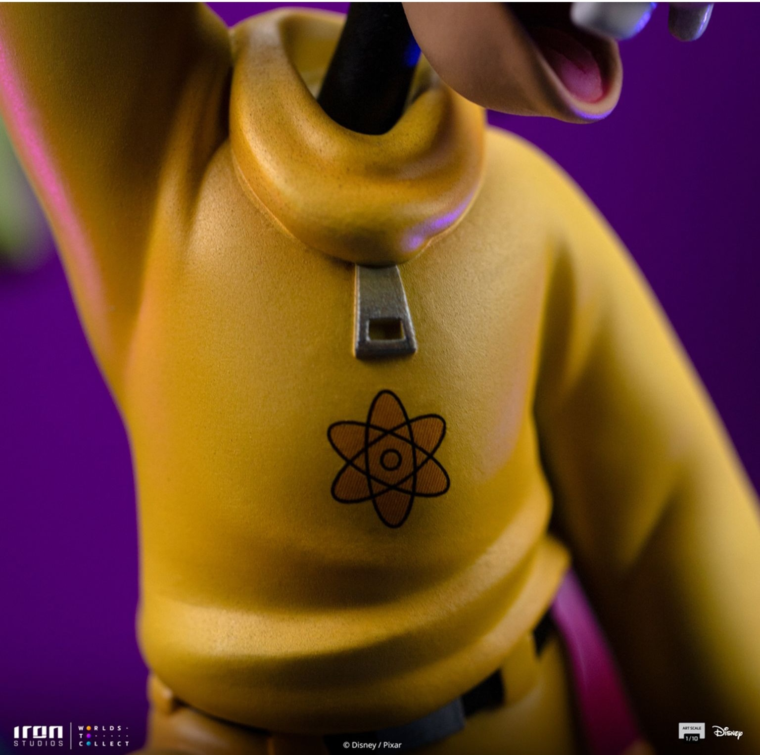 La estatua muestra a Goofy y a Max en una pose llena de energía y movimiento. Sus rostros expresan entusiasmo, complicidad y ese caos adorable que los caracteriza. Esta escena representa el espíritu de su aventura por carretera, donde padre e hijo aprendieron a comprenderse y valorarse.