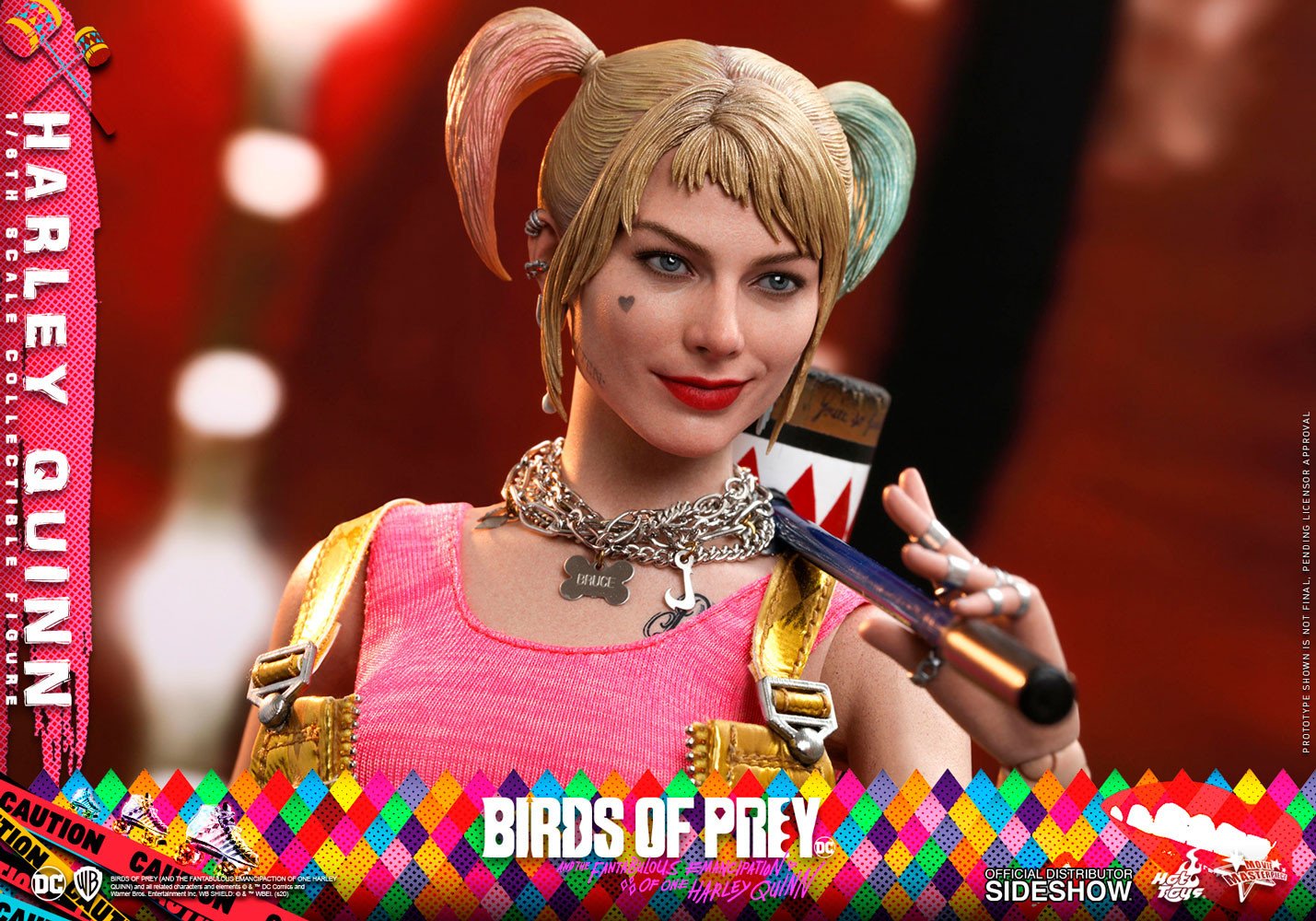 ¡Hot Toys presenta la figura de Harley Quinn Birds of Prey en escala 1/6! Bellamente diseñada en base a la aparición en la pantalla de Margot Robbie como Harley Quinn en Birds of Prey, esta figura Hot Toys de alta precisión, presenta una escultura de cabeza y cabello recientemente desarrollada con una mano de obra increíble, un atuendo dorado sofisticado a medida como se ve en el primer avance del película, un par de zapatos con ruedas intercambiables, el icónico mazo de Harley, collares de cadena, una figura con tarjetas gráficas especialmente diseñadas y un fondo de personaje.