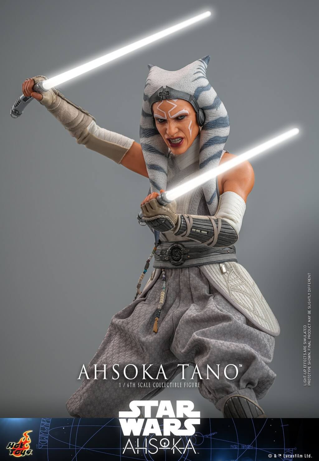La ex Caballero Jedi Ahsoka Tano sirvió una vez como aprendiz padawan del Jedi Anakin Skywalker durante las Guerras Clon. Ahsoka, una líder y guerrera respetada en sintonía con el lado luminoso de la Fuerza, se convirtió en una luchadora formidable antes de que el reinado del Imperio cambiara el curso de la historia galáctica. Aunque se alejó de la Orden Jedi, continuó defendiendo a quienes luchan por la paz y la justicia en la galaxia mucho después de la caída de la República. ¡Sideshow y Hot Toys se enorgullecen de presentar oficialmente hoy la nueva figura coleccionable de Ahsoka Tano en sexta escala basada en la aclamada serie de acción en vivo! La figura coleccionable de Star Wars de alta precisión incluye 2 esculturas de rostros intercambiables que presentan diferentes expresiones meticulosamente elaboradas con una semejanza sorprendente y un lekku articulado, articulación especializada para representar sus habilidades guerreras, una impresionante confección de su nuevo atuendo, un par de sables de luz, una capa y un base de exhibición! ¡Ahora es un buen momento para que esta increíble figura de acción de Ahsoka Tano forme parte de tu colección de Star Wars!