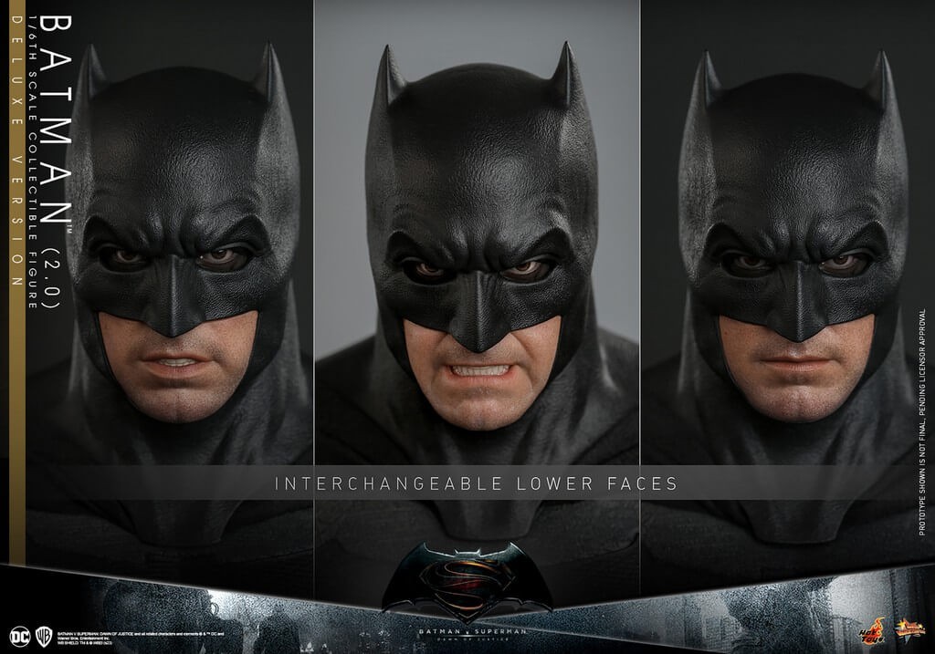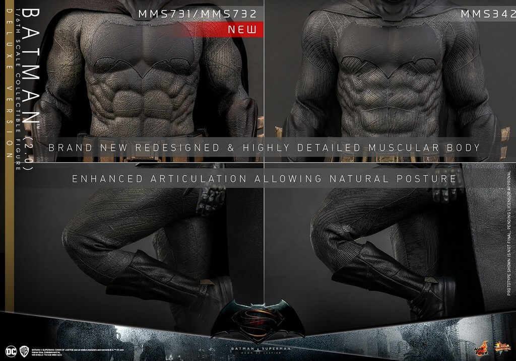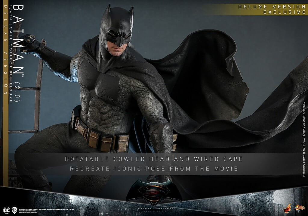 En la película de 2016 Batman v Superman: Dawn of Justice, Batman, el formidable justiciero de Gotham City, se preocupa cada vez más por los poderes desenfrenados de los superhéroes divinos. Este miedo lleva a Batman a enfrentarse al venerado superhéroe de Metrópolis, Superman, lo que resulta en un conflicto entre los dos. Mientras Batman y Superman se involucran en una batalla de principios, estrategia y pura voluntad, surge una nueva amenaza que amenaza a la civilización como nunca antes. Sideshow y Hot Toys se enorgullecen de presentar una versión mejorada de la figura coleccionable de Batman en sexta escala de la colección Batman v Superman: Dawn of Justice. La versión 2.0 de esta popular figura presenta detalles y precisión mejorados en comparación con la versión cinematográfica del Caballero Oscuro. Los coleccionistas apreciarán el cuidado obsesivo puesto en reproducir fielmente cada matiz sutil que da vida a la apariencia de Batman con un realismo sorprendente. La figura coleccionable de DC Comics, fiel a la película, está especialmente diseñada en base a la imagen de Batman de la película, con una escultura de cabeza de Bruce Wayne recientemente desarrollada con globos oculares separados y dos estilos de esculturas de cabello, cabeza con capucha de Batman recientemente diseñada con articulación de cuello sin costuras. , globos oculares separados y diseño de técnicas de caras inferiores intercambiables, un nuevo cuerpo especializado que resalta el físico musculoso de Batman, especialmente en la forma del brazo, un batitraje meticulosamente diseñado y una selección de dispositivos de Batman. La versión Deluxe incluye una cabeza con capucha giratoria, una batcapa con cables y un telón de fondo diorama especialmente diseñado de los callejones anticuados con múltiples formas de mostrar y recrear escenas icónicas de películas y páginas de cómics. Esta figura de acción mejorada de Batman seguramente será una pieza central de la colección de cualquier fan.
