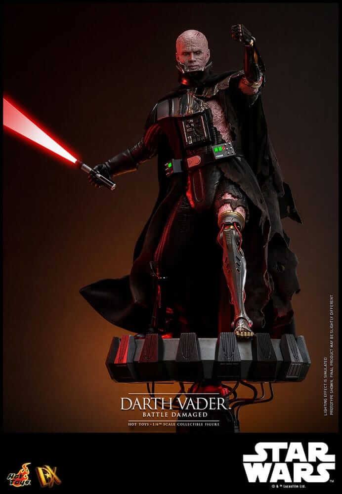 - La impresionante figura de acción coleccionable de Star Wars está meticulosamente desarrollada y muestra la carne detallada y las partes cibernéticas del amenazante Lord Sith. Cuenta con una nueva cabeza esculpida del ex Anakin Skywalker, un casco completo con efectos de intemperie, un traje dañado en batalla muy detallado y partes cibernéticas del cuerpo de Vader, un sable de luz con iluminación LED y una base de exhibición temática ajustable con función de iluminación LED.