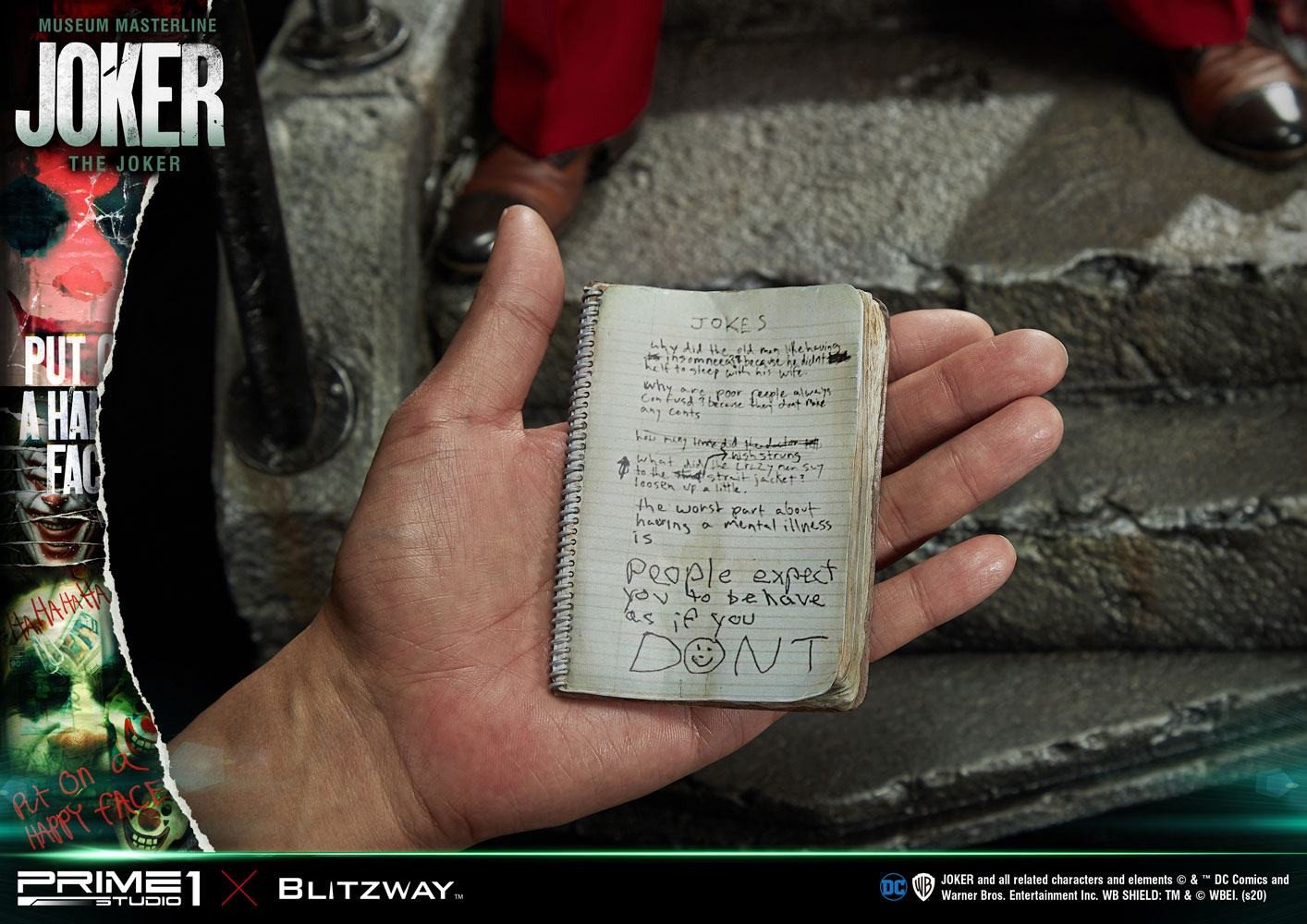 Para celebrar el 80 aniversario del príncipe del crimen, Blitzway y Prime 1 Studio se enorgullecen en anunciar la Estatua The Joker Prime1 Studio Escala 1/3 Bonus Version, basada en el aspecto del personaje en dicha película. A partir de detalles muy pequeños, Prime 1 Studio y Blitzway dedicaron todos sus esfuerzos a recrear la apariencia de Joaquin Phoenix como Joker en la película, incluidas las expresiones faciales más vívidas, los disfraces que se han reducido de manera realista, una base diorama que se ha diseñado a partir de las escena más icónica de la película, y accesorios principales que pueden conectar los fragmentos de la película que existe en los recuerdos de los fans con esta pieza de coleccionismo del más alto nivel. Una obra de arte.