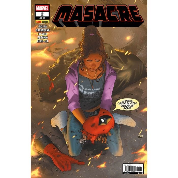 ¡Cómic de Masacre con nuevo formato! Una iniciativa que forma parte de Panini Back to Basics. ¡Comienza una nueva era para el Mercenario Bocazas! Cody Ziglar (Miles Morales: Spider-Man) se lo ha pasado en grande preparando esta etapa de Masacre. Y lo primero que hará, junto al increíble artista Rogê Antônio, es presentar a un nuevo villano capaz de hacérselas pasar canutas a Wade.