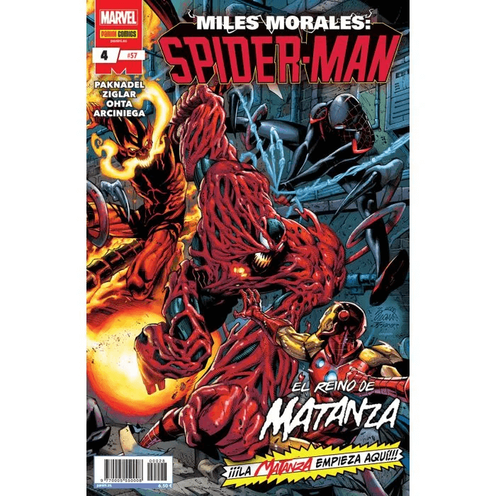 ¡Matanza contra Miles! Cletus Kasady ha vuelto, con la armadura creada por Iron Man durante “Rey de Negro”, tiene más capacidad que nunca para generar el caos a lo largo de Nueva York y de todo el Universo Marvel. Por suerte, Brooklyn tiene su propio Hombre Araña.