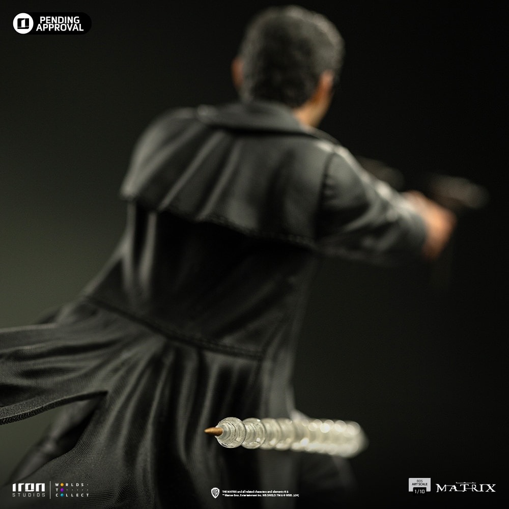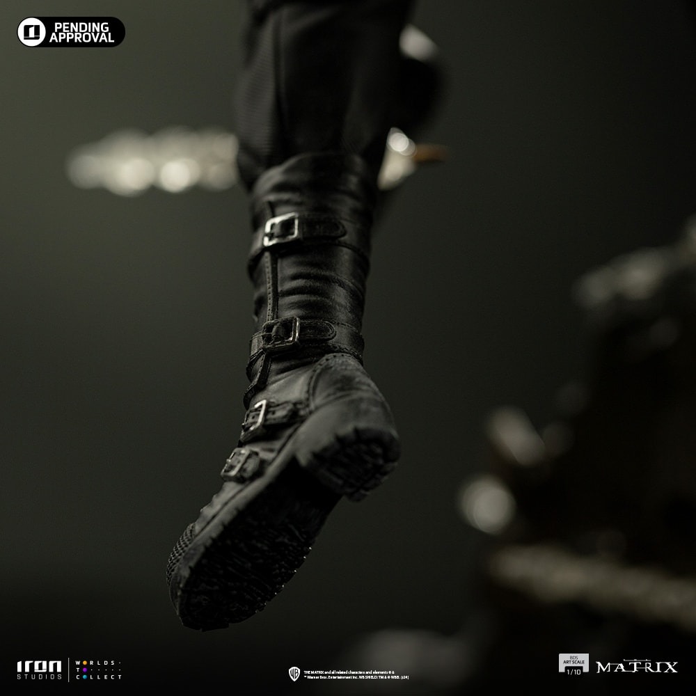 La estatua recrea un momento icónico de la película. Neo se muestra en una pose dinámica. La figura captura su destreza. De hecho, cada detalle de la ropa ha sido cuidadosamente recreado. La figura tiene un nivel de detalle impresionante. Los artistas la pintaron a mano. Por lo tanto, el realismo de la pieza es increíble. Es una pieza ideal para todos los coleccionistas y fans del género.