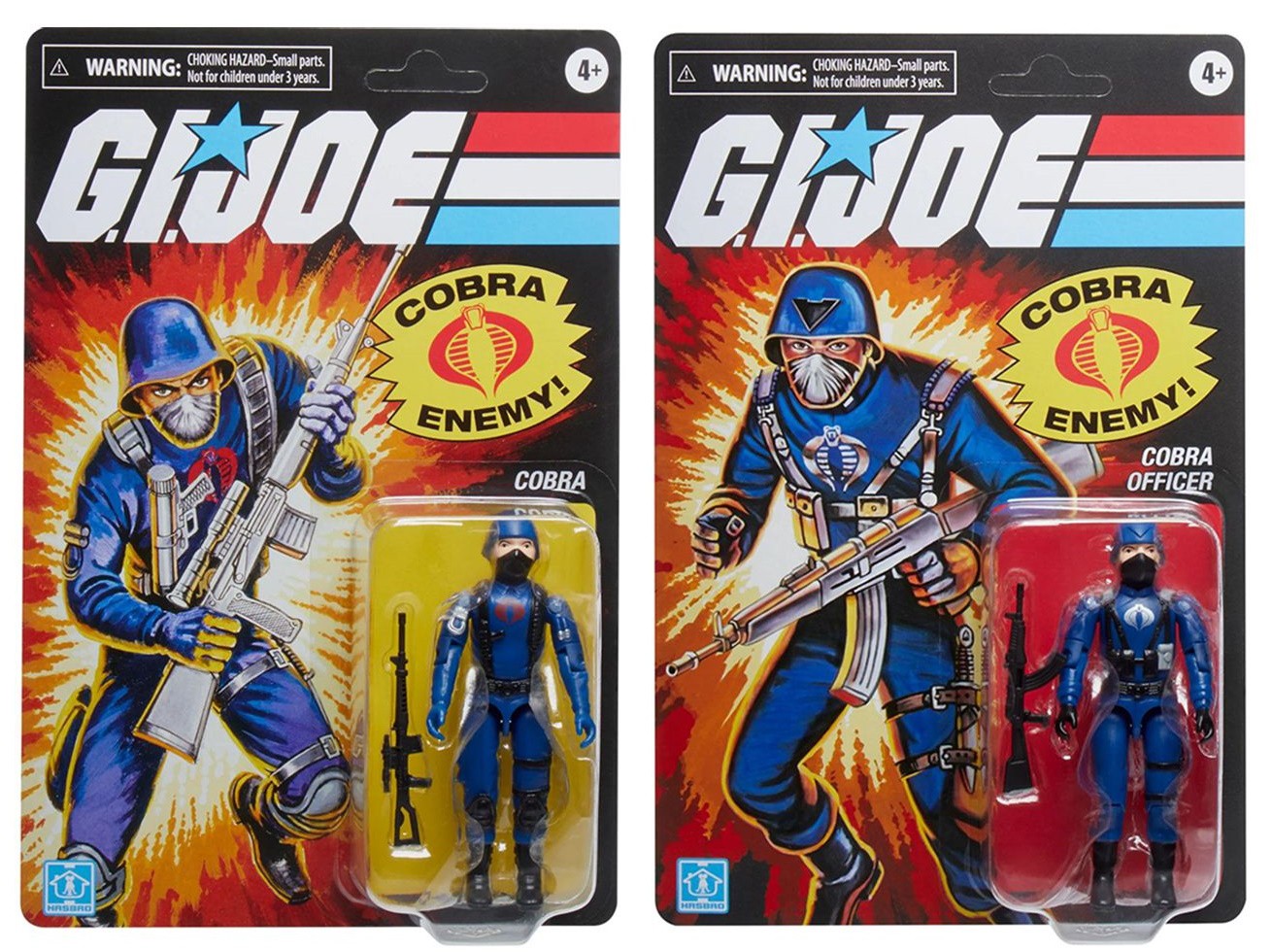 Hasbro presenta, dentro de la colección Retro Collection, este pack de 2 figuras de Cobra Trooper & Cobra Officer. Las figuras miden 9,5 cm y están inspiradas por el 40ª aniversario de la serie “G.I Joe”. Cuenta con múltiples puntos de articulación y detalles premium. Cada Cobra incluye 1x arma y, además, vienen en su propio blíster.