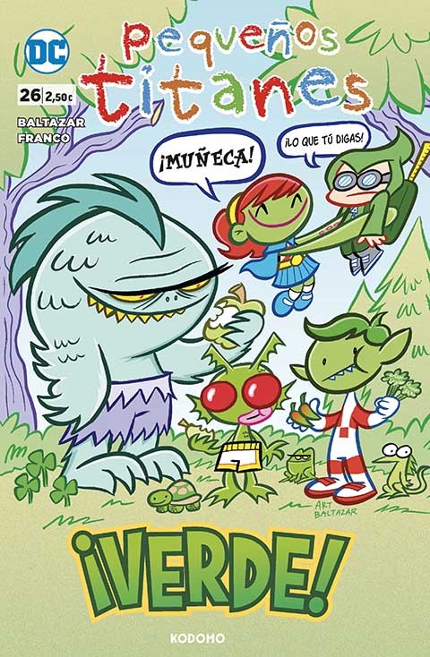 ¡Un número muy verde! Toca pasar lista: Miss Marciana, Chico Bestia, Gizmo y… ¿Killer Croc? Oh, no… Killer Croc es muy peligroso. Pero viene en son de paz. ¡¿Y también puede comer cosas verdes?! Menos mal.