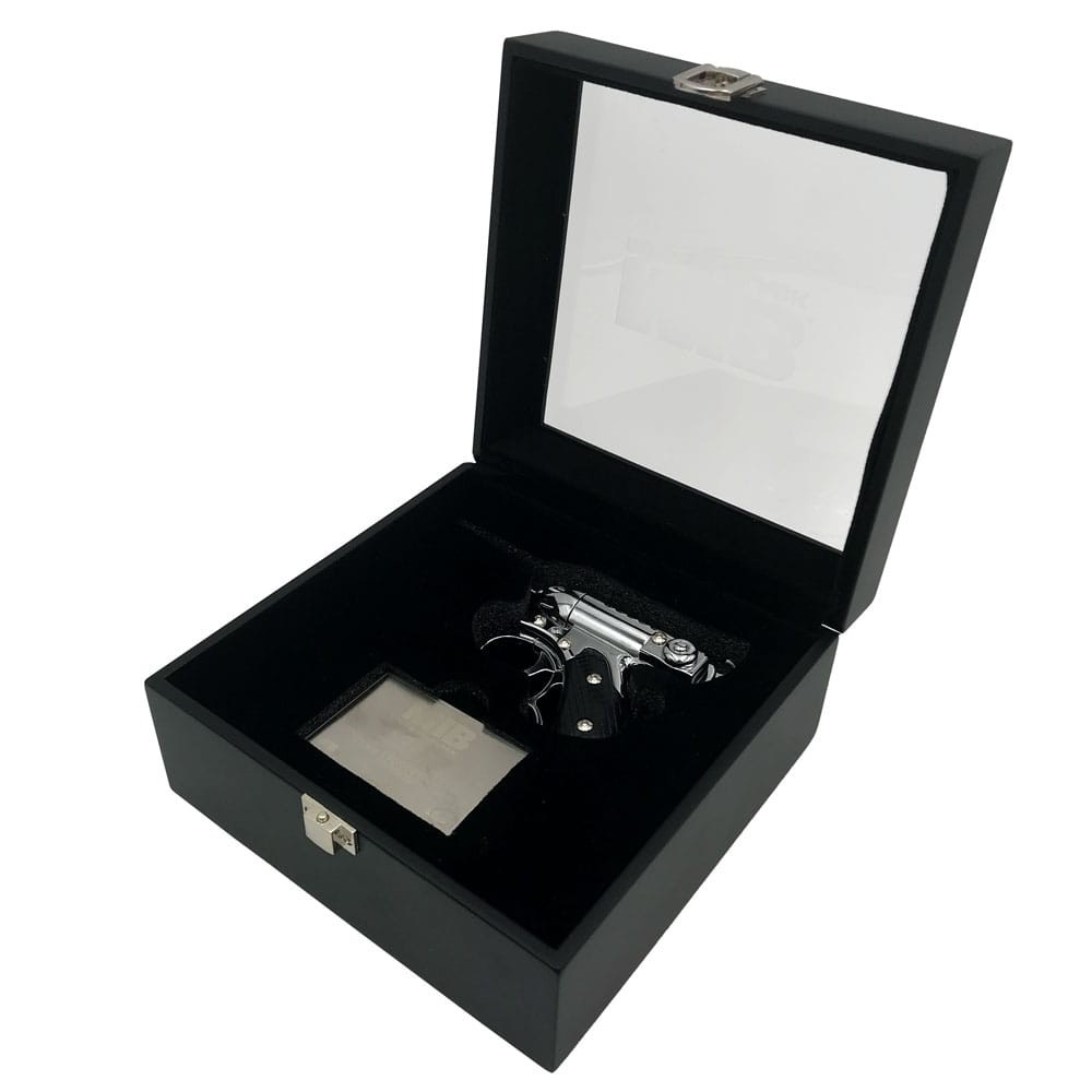 Esta réplica mide aproximadamente 12 cm de largo, está fabricada en metal cromado de alta calidad y cuenta con efectos de luz y sonido totalmente funcionales (pilas incluidas), que reproducen fielmente la experiencia de esta singular arma alienígena. Edición limitada a solo 1000 unidades en todo el mundo, lo que la convierte en una pieza de colección exclusiva para los verdaderos fans del universo MIB.