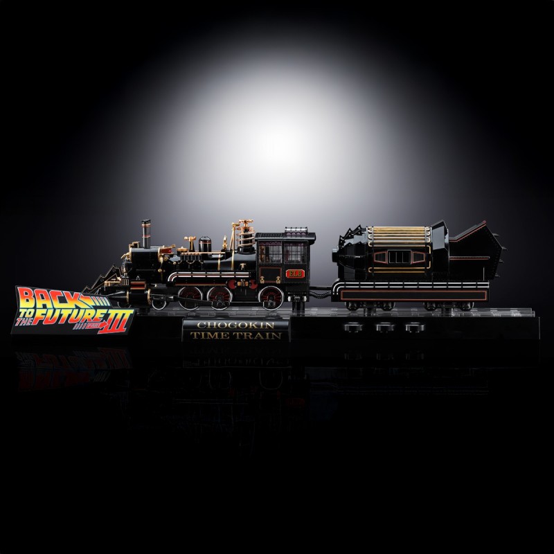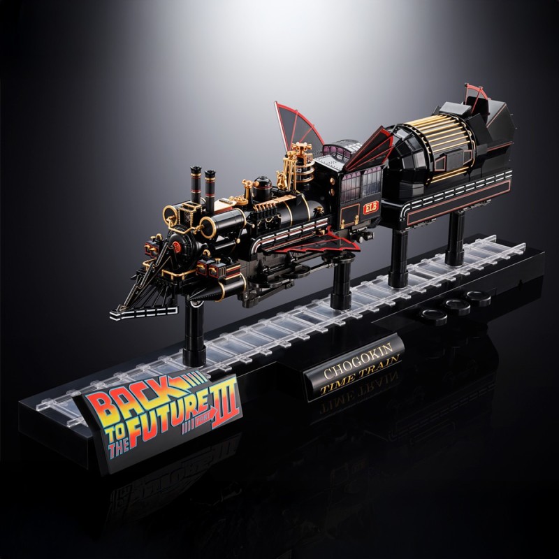 Time Train Regreso Al Futuro III Chogokin cuenta con un mecanismo que gira las ruedas y eleva el vehículo.