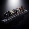 Esta asombrosa locomotora está fabricada con ABS, PVC y metal, lo que le da un peso y una sensación de autenticidad. Tiene una longitud de 48 cm, lo que la convierte en una pieza muy destacada en cualquier colección. La base, que recrea una vía de tren, alcanza los 56 cm de largo. Además, está decorada con el logotipo oficial de la película.