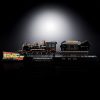 - Al añadir las alas incluidas como accesorio, se completa el aspecto de la máquina del tiempo en su modo de vuelo. Los LEDs bajo la locomotora y en la parte posterior se iluminan, recreando el espectacular efecto de propulsión de la película. Algunas piezas se activan con electricidad. Por ejemplo, los engranajes de la locomotora que giran y cambian de dirección. También la luz blanca del lateral que se enciende como en el filme.