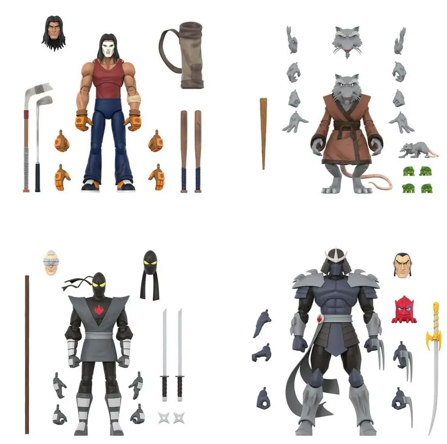 Este pack de figuras Ultimates Wave 13 de las Tortugas Ninja incluye cuatro figuras esenciales para cualquier fanático. Cada figura mide 18 cm y tiene detalles de alta calidad. Con articulación ultra detallada, podrás posar a tus personajes favoritos en distintas posiciones. Es perfecto tanto para exponer como para jugar.